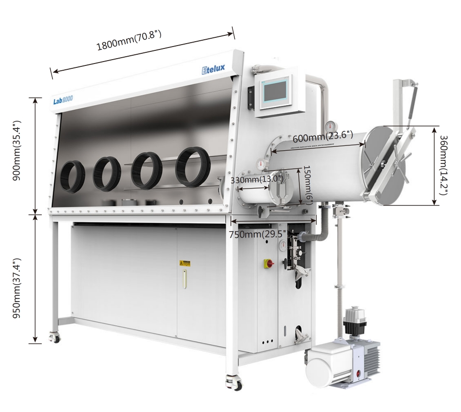 Standard glove box 1200              Chamber size 1200mm(47.2″)×750mm(29.5″)×900mm(35.4″)